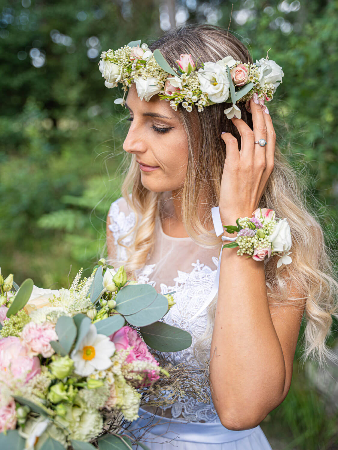 Co všechno pro vás můžeme připravit? Na prvním místě je kytice pro nevěstu, ke které dále ladíme kytici pro svědkyni a družičku, maminku nebo babičku, případně i dětské kytice. Žádané jsou i květinové doplňky jako např. čelenka do vlasů, květinový náramek nebo vývazek na sponku či hřebínek.